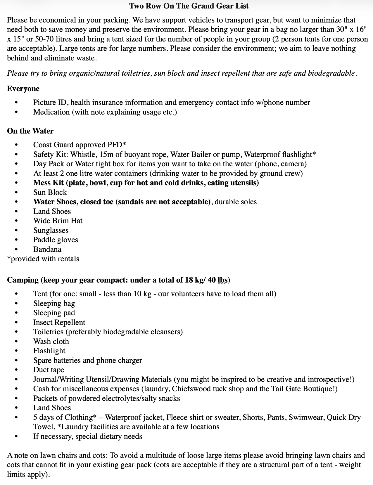 In registering, all participants agree to the guidelines below and agree to follow them during our time together. Failure to comply will result in your leaving the paddle at your own expense.
